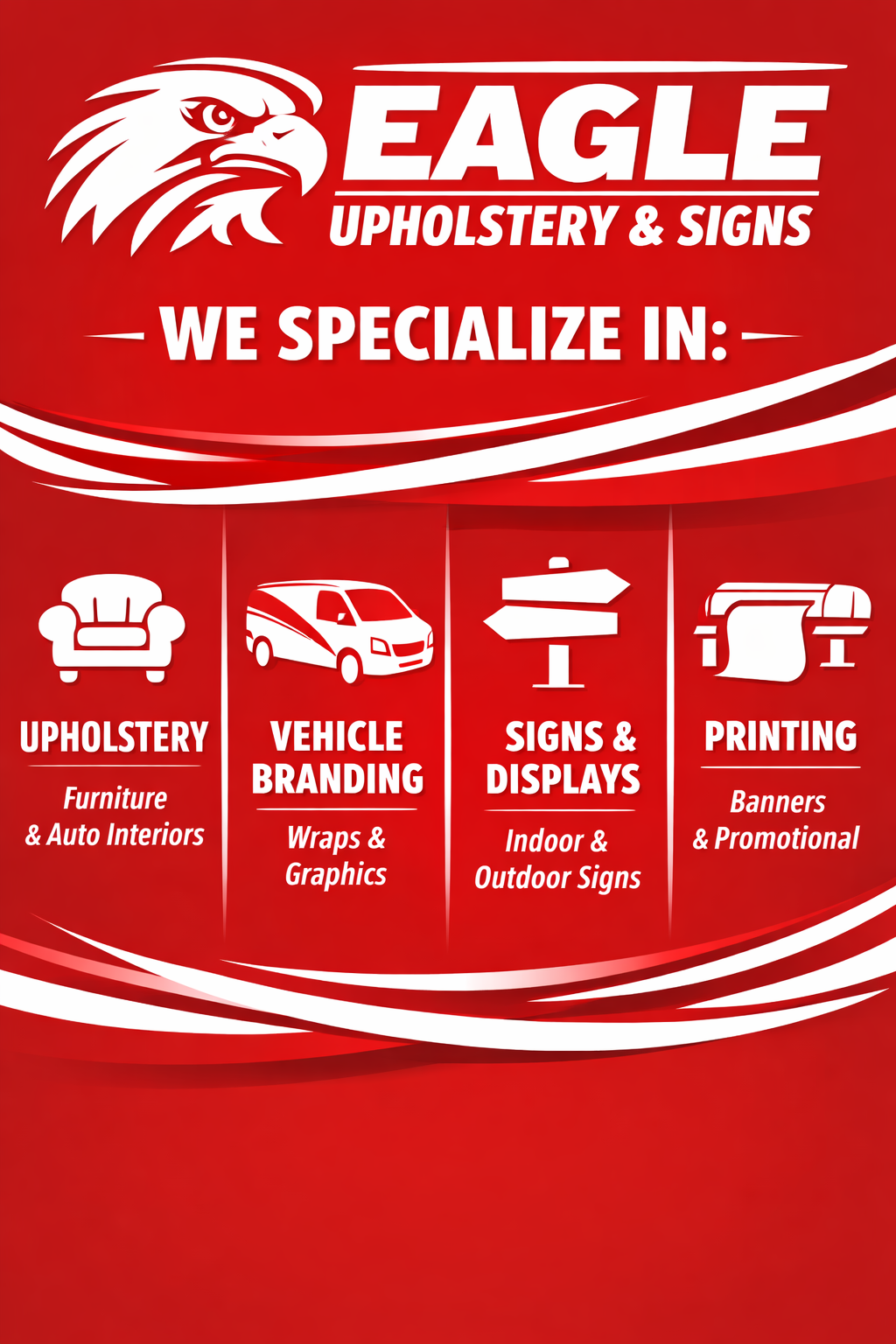 By combining traditional upholstery craftsmanship with modern sign-making and digital printing, Eagle Upholstery & Signs offers a complete one-stop solution for interiors, vehicles and business branding.
