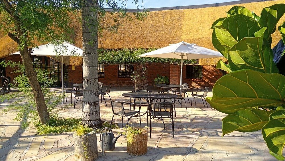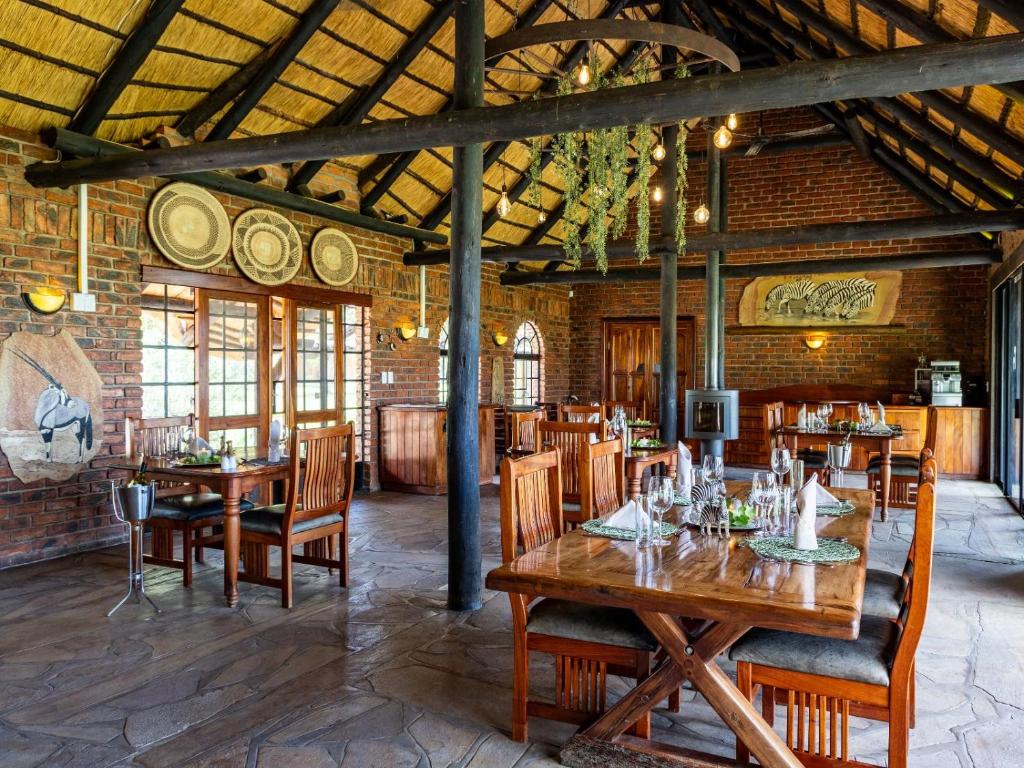 🌺 Thatched-Roof Restaurant & Bar – enjoy gourmet Namibian cuisine and ice-cold drinks overlooking a waterhole where wildlife gathers.