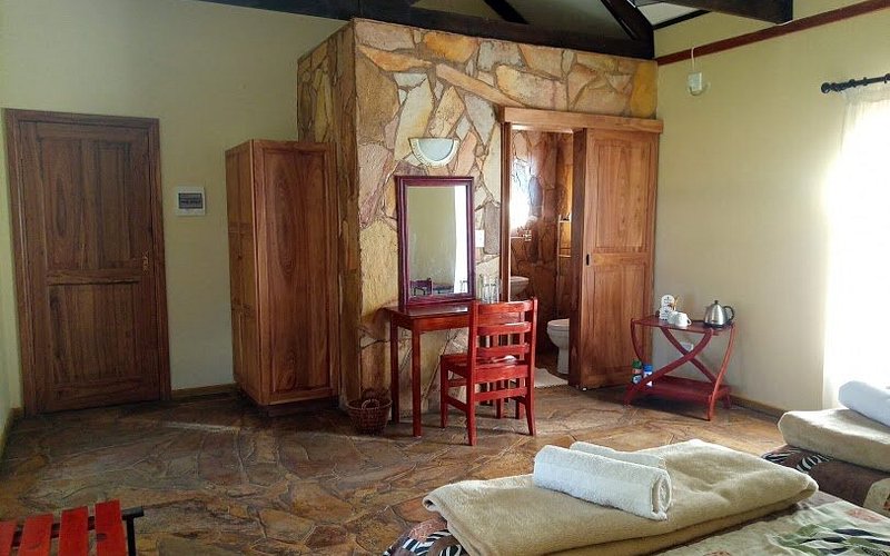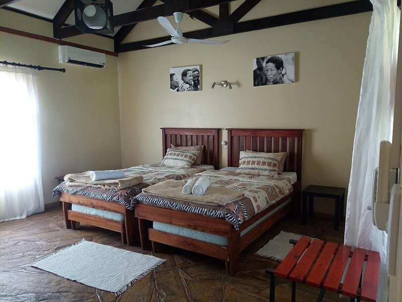 💠 Elegant Interiors with mosquito nets, twin beds, and hand-crafted Namibian décor.